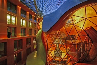 Futuristisches Raumerlebnis und Blick in den Konferenzraum der von Frank O. Gehry geplanten DZ Bank, 2008