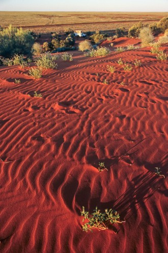 Romantische Übernachtung am Fuß einer Düne der Simpsonwüste, Australien