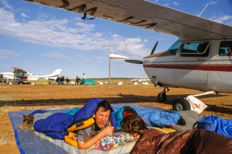 Hunderte kommen mit ihren Cessnas zum Outback Pferderennen und übernachten auf dem Rollfeld, Birdsville Races, 1998