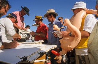 Buchmacher beim Wetten, Birdsville Races am Rande der Simpson Desert, Outback Pferderennen, Queensland,