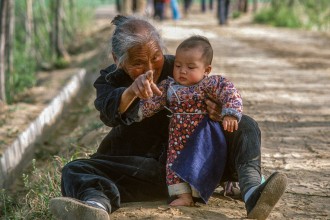 Grandmother with "bound", crippled feet in a people's commune "Evergreen" near Beijing, 1978