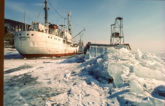 Temperatures of minus 21° keep heavy weights frozen in Lake Baikal for months